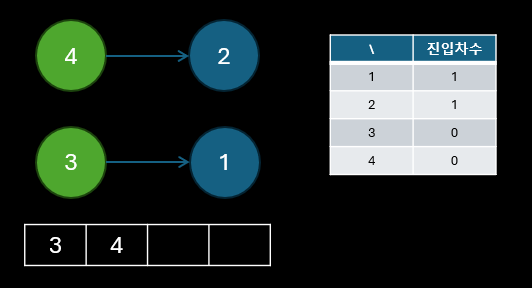 * 3과 4의 count가 0이다. == 3과 4로 향하는 간선이 없다.