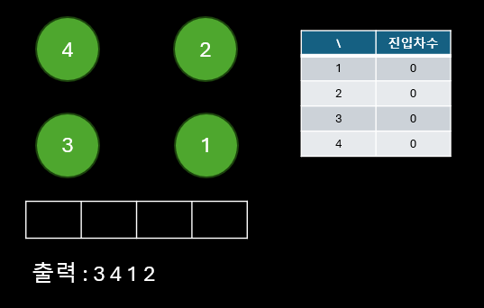 * 1과 2는 둘 다 count가 0이 되었으니 답에 순서대로 추가